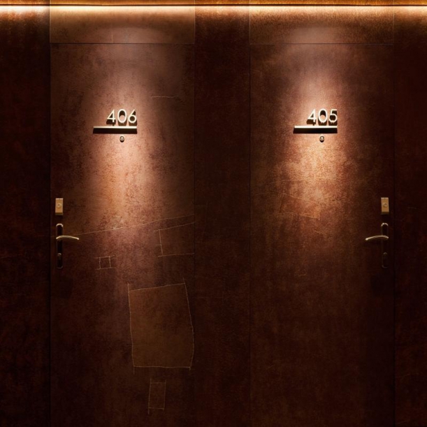 Traceless materiál se například použil na stolové desky v nových saunách po celé České republice. Prohlédnout si ho můžete třeba v nové Saunii na Černém Mostě.