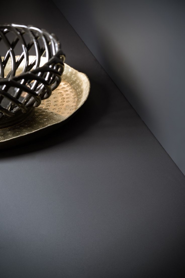 Dále nová kolekce nabízí Performance Textures s technologií na bázi akrylu s elektronickým vytvrzením povrchu. Povrchová úprava má označení Traceless, na laminátu nezůstávají viditelné otisky prstů. A to hlavně oceníte na odstínech, které jsou velmi oblíbené: černá nebo antracitově šedá. Objekty potažené povrchem Traceless jsou navíc vhodné pro kontakt s potravinami. Firma Resopal je dodává ve formátu 305 x 132 cm v tl. od 0,8 mm. TAUN má skladem 9 unibarev v tomto na údržbu skvělém povrchu a kompaktní samonosné desky v tl. 10 a 12 mm v černé a antracitové barvě.