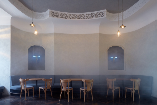 Není tomu tak dlouho, co interiér kavárny s pestrou minulostí vyměnil svůj dlouholetý háv a proměnil se na elegantní i umělecky velice zajímavý prostor. Za rekonstrukcí stojí architekti Martin Gaberle a Marek Fischer z ateliéru Coll Coll, kteří chtěli umocnit atmosféru sálu z počátku dvacátého století a dodat mu punc moderní celistvosti.