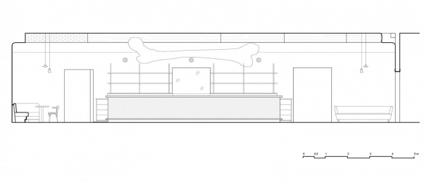 Tak jako v původním prostoru, i v tom novém se nachází pověstná levitující kost nad barem od umělce Jiřího Davida, kterou se architekti rozhodli ponechat jako tradiční symbol kavárny. Zanechali také pro NoD typický centrální bar, který oblékli do nového kabátu a kolem kterého vytvořili větší volný prostor. Na vyvýšené pódium, kde se nachází hlavní místo pro posezení s výhledem do ulice, dodali také vhodný nábytek.