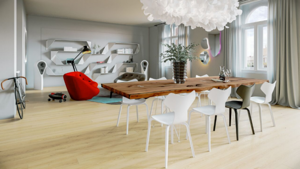 A komerční realizace? Zaujaly nás kanceláře pro realitní kancelář Svoboda a Williams, které do velké míry ctí původní prostor – zachovány zůstaly třeba dekorativní štuky a dřevěné parkety. Dominantou vstupní místnosti je recepce obložená nastříhanými igelitovými pytlíky od výtvarnice Jitky Škopové, které připomínají peří. „Vytvořili jsme také velké solitérní stoly, jež umožňují práci v týmu,“ vzpomíná Adam Jirkal. Interiér pak doplnily obrazy ze soukromé sbírky majitelů firmy.