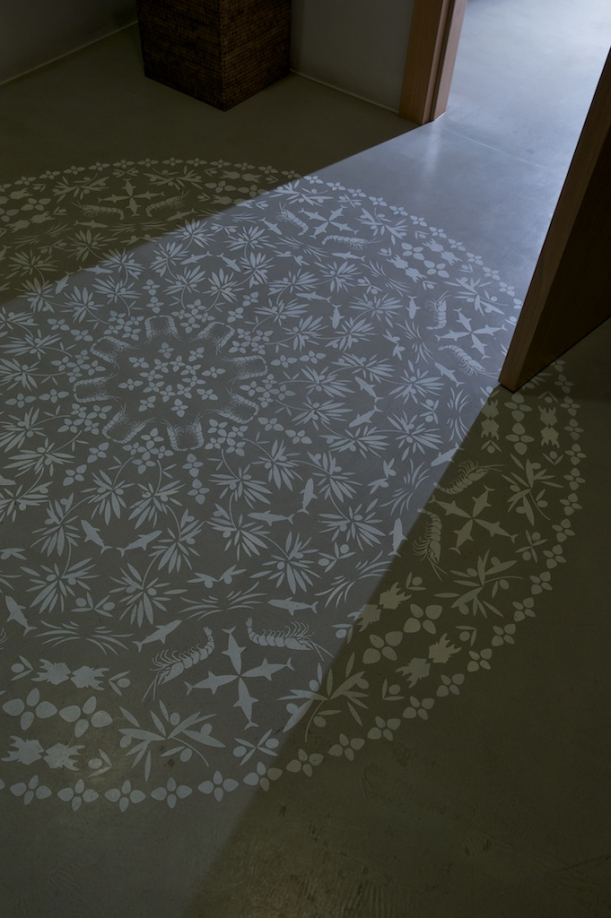 Návrh dlaždic pro restauraci Ambiente Pasta Fresca má na svědomí studio Llev. Na tmavý beton Pandomo použili designéři speciální bílou barvu a vyhráli si s dekorativními florálními motivy.
