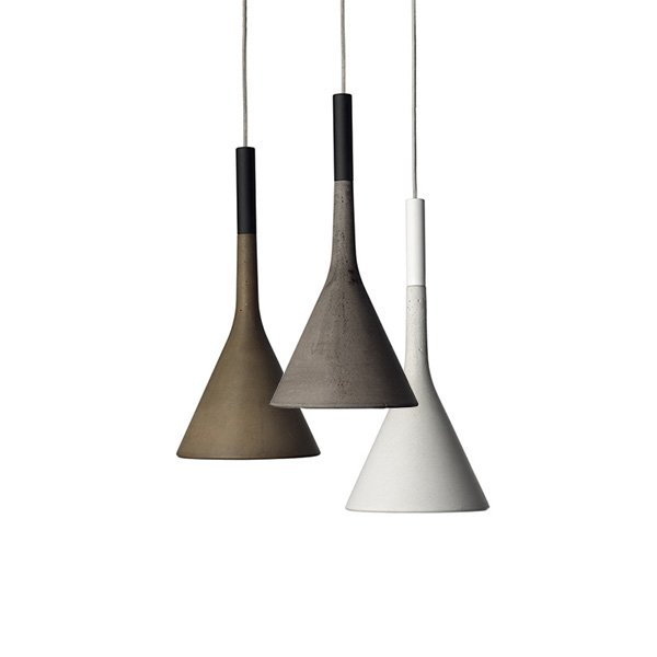 Betonová barvená svítidla Aplomb od italské značky Foscarini jsou ideálním společníkem do kuchyní čí jídelen. Umístěné nad bar či jídelní stůl udělají tečku za vyladěným interiérem. Bílou, šedou či hnědou variantu nabízí Stockist, Bulb, Hagos a Designpropaganda.