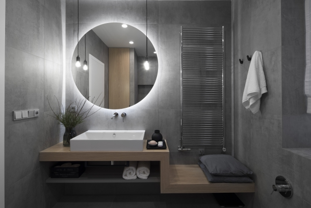 Kolekce Hup Upgrade italského výrobce Del Conca na to jde od podlahy. Keramické dlaždice v betonové úpravě interiér zchladí a opticky sjednotí. Potom již přichází na řadu nábytek a doplňky. Firma Elite Bath nabízí širokou škálu formátů a různá barevná provedení.
