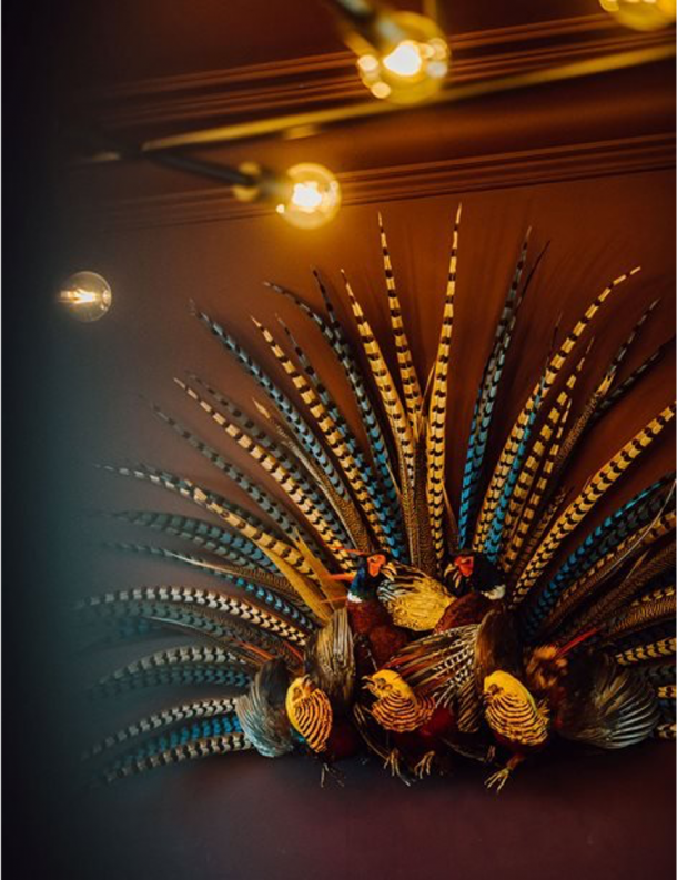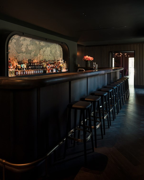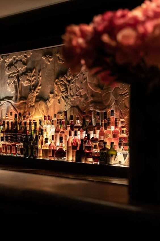 V barové části upoutá pozornost speciálně navržený basreliéf na stěně. Lovecká scéna je vytesána do ardenského modrého kamene. Designéři se rozhodli použít místní mramor, aby i zde využili lokální materiály.