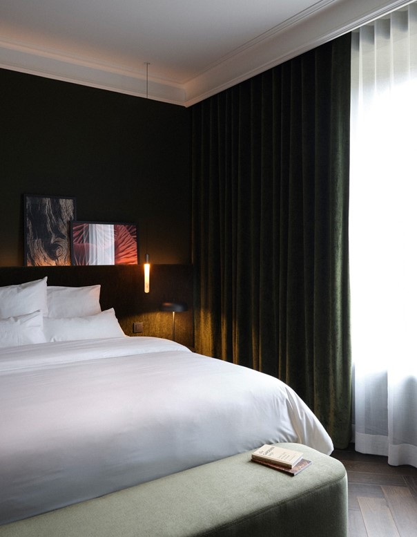 „Náš koncept vycházel z pocitu, který jsme chtěli zachytit v návrhu. Představili jsme si, co prožívá lovec, když se toulá nad ránem lesem. Textury, zvuky, první sluneční světlo třpytící se mezi listy stromů. Zážitek, který může nyní pocítit každý hotelový host. Zároveň jsme respektovali původní stavbu, místo a hledali správnou rovnováhu mezi historií a momentem překvapení. Chtěli jsme, aby se hosté bavili,“ dodává Ruud Belmans ze studia WeWantMore.