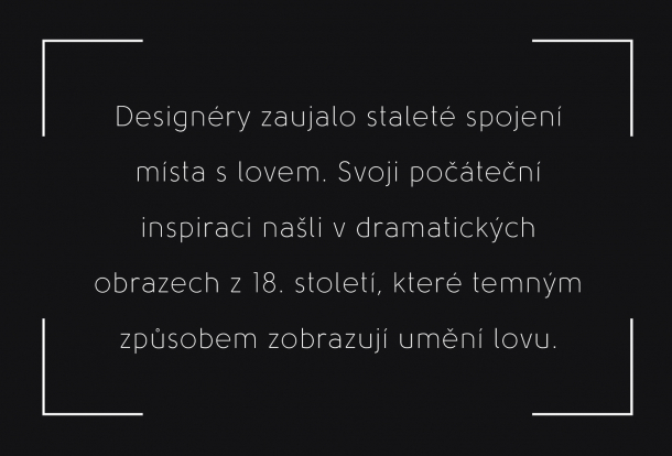Designéry zaujalo staleté spojení místa s lovem. Svoji počáteční inspiraci našli v dramatických obrazech z 18. století, které temným způsobem zobrazují umění lovu. Myšlenka přirozeně prostoupila do celého konceptu, čerpajícího ze smyslové zkušenosti lovce.