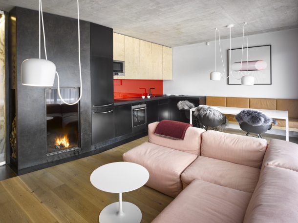Autorka návrhu i investor se rychle shodli, že cílem bude vytvořit příjemný, nadčasový a elegantní byt, ve kterém bude majitel se svou rodinou trávit letní i zimní dovolenou. Výzvou byla pro autorku zejména nevelká plocha bytu: „Museli jsme do poměrně malého prostoru zakomponovat řadu funkcí. Obytná část měla obsáhnout jak jídelnu, kuchyň a obývací pokoj, tak krb či televizi.“