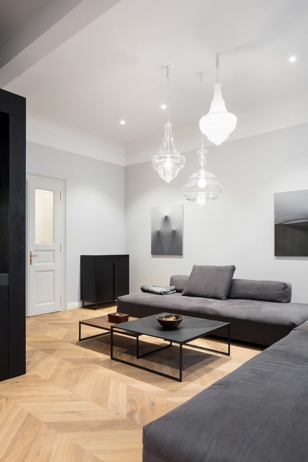 Myslíte si, že historické budovy skrývají většinou starobyle laděné byty? Projekt architektů Tomáše Ciesly a Dženity Sagdati ze studia archicraft ukazuje pravý opak. V centru Prahy vytvořili moderní interiér s jednoduchými, avšak velice silnými designovými prvky.