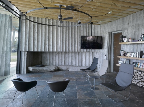 Architekt prý cítil zodpovědnost schovat celý objem do krajiny. S okolní přírodou si měl jen povídat, doplňovat ji a dýchat s ní. Dosáhl toho mimo jiné zakopáním části domu do pozvolného svahu.