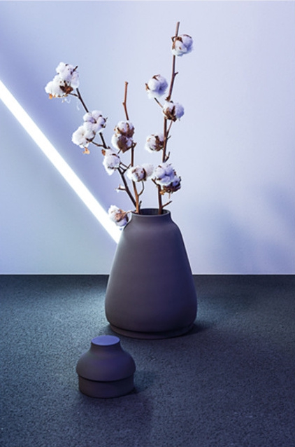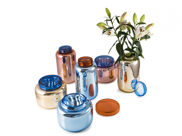 Německý designér Sebastian Herkner navrhl pro Pulpo vázy z ručně foukaného skla. Příměs tekutého stříbra vytváří výjimečný metalický efekt. Vázy Container Low Blue seženete v obchodě Monobrand.