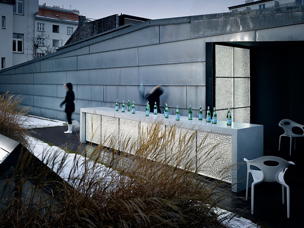 Zde posloužily Hydrogene panely k obložení baru i stěny.