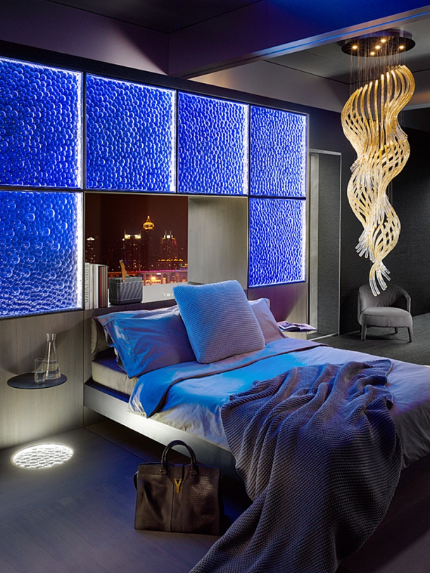 Díky barevnému nasvícení získává místnost zcela nový rozměr.