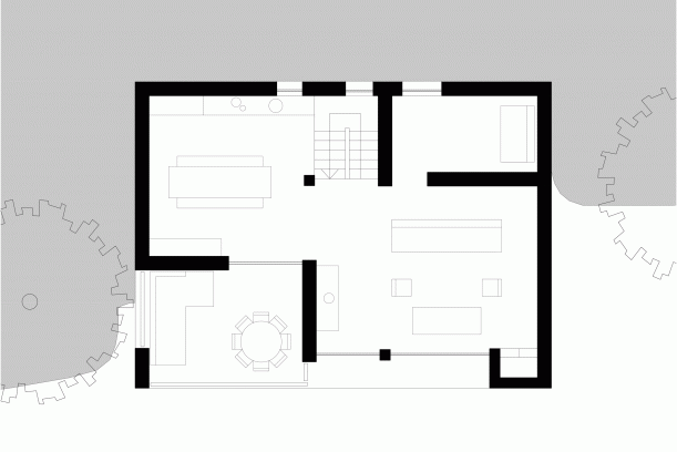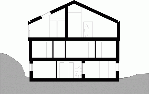 Dům replikuje formát tradičních chalup, které kdysi zemědělci používali k tomu, aby zvířata drželi v přízemí ve stodole a zároveň tu ukládali krmivo. V horních patrech pak sami bydleli. Pro tento horský domek také platí různé uspořádání s odlišnými funkcemi bydlení. V přízemí najdete technické prostory, včetně vchodu a parkoviště, v prvním patře všechny ložnice a ve druhém zase obytné prostory.
