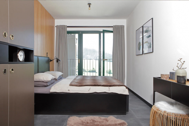 Horský apartmán v Loučné se hrdě hlásí ke svému okolí. Působí uhlazeně a kompaktně, respektuje přilehlou přírodu a citlivě s ní komunikuje. Všechny místnosti propojují stejné černé dveře a podlaha rovněž zůstává neměnná napříč celým interiérem. Opakování určitých prvků na různé způsoby se ukázalo jako trefa do černého. Nebo spíše zeleného? Dominantní zelená odkazuje na krušnohorské lesy a citlivě se vine skrz prostor v rozličných formách. Martině Schultes se povedlo na jednom místě propojit moderní s přírodním a design s řemeslem.