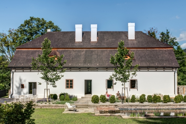 Projekt je dílem Daniely Hradilové, architektky a majitelky v jednom. Celý dům i s přilehlou velkou zahradou s mužem od základu zrekonstruovala a do posledního detailu zařídila. Nápad vytvořit něco svého, něco, co bude zároveň domovem i od srdce vytvořeným projektem, se u ní formoval už při jejích cestách v zahraničí. „Cesty za architekturou, designem a historií po Itálii a Španělsku ve mně stále víc a víc probouzely touhu zažít podobnou atmosféru i u nás. Opravit staré kamenné stavení, v jakém jsme bydleli v Toskánsku, starat se o hosty, jako se starali o nás na severošpanělském Caminu, ztratit se v bílé barvě jihu nebo severu, najít své sny,“ vysvětluje designérka.