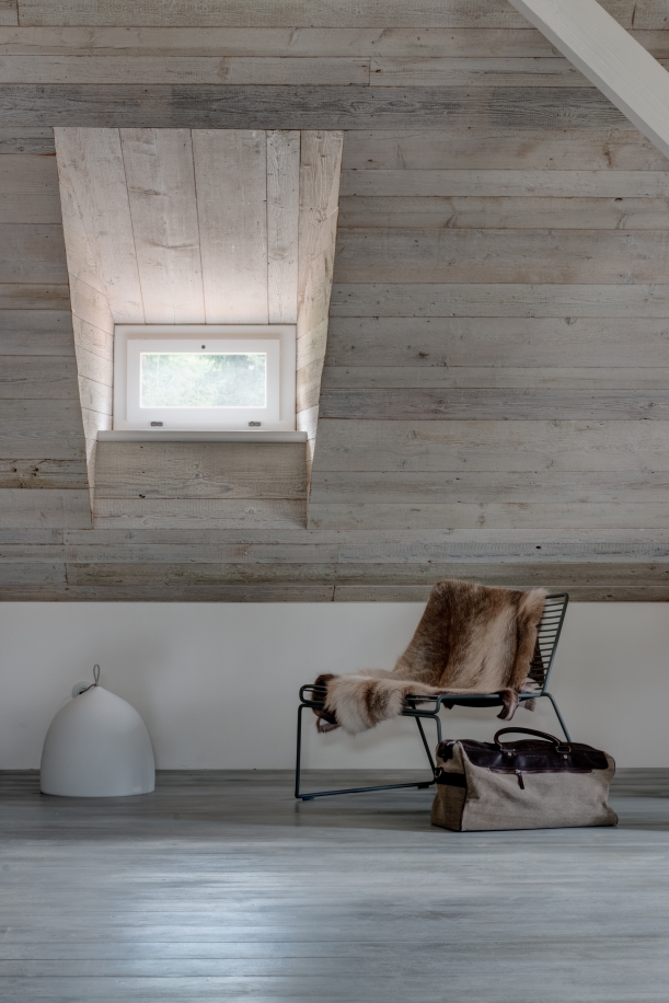 Při renovaci bylo zásadní otázkou světlo v interiéru. Jelikož dřív mívaly chalupy na horách malá okna, aby neuteklo teplo, i tento dům potřeboval trochu prosvětlit. Pro zachování úcty k tradicím byla do střechy vložena jen malá tzv. volská okna a prostor v přízemí prosvětlily dveře s lehkými skleněnými výplněmi. „Tato konfrontace starého s novým se myslím podařila a přinesla interiéru tolik potřebné světlo," vysvětluje designérka.