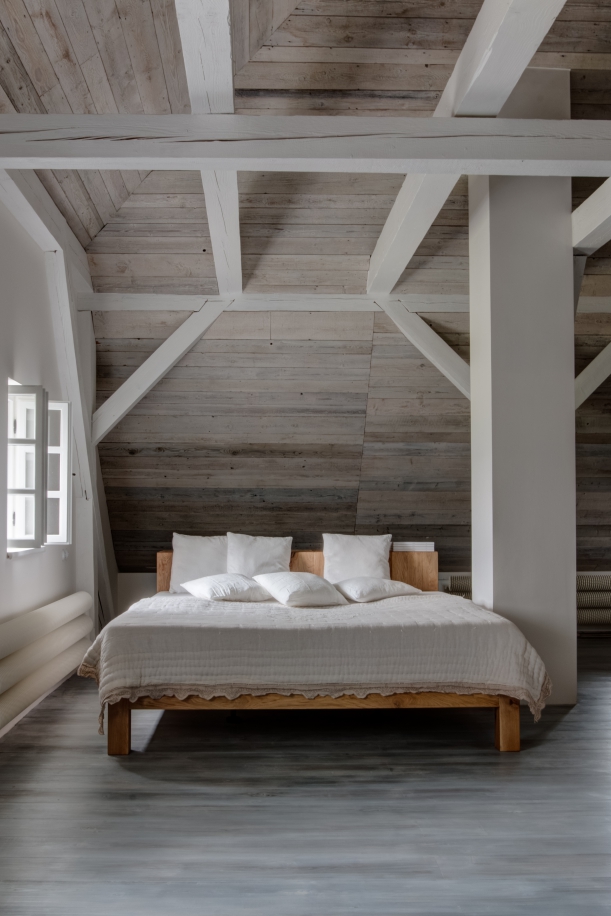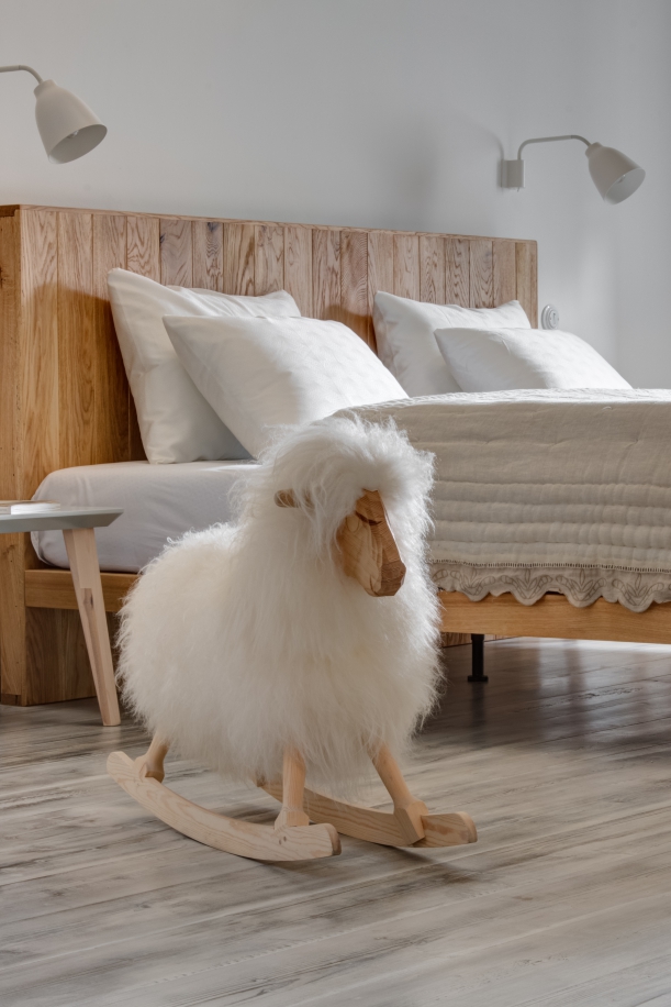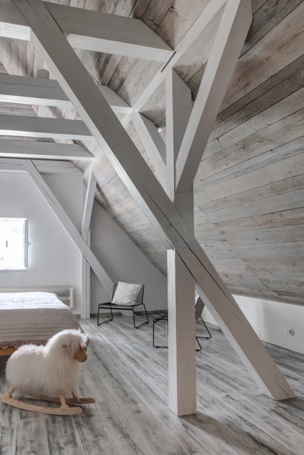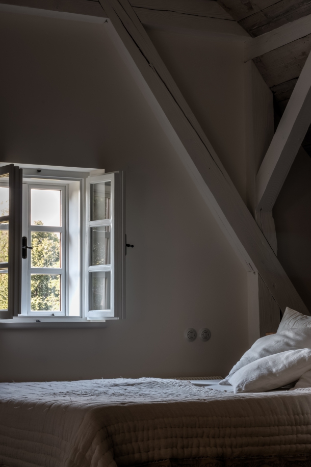 Ostatní ložnice se nacházejí v podkroví. Pokoj Dcera se pyšní krásnými detaily bílého trámoví. Má 36 metrů čtverečních a jde o nejmenší a nejútulnější pokoj hotelu. Další pokoj má 44 metrů čtverečních a jmenuje se Syn. Nabízí skrytou alkovnu pro spaní i odpočinek. A naopoak největším pokojem, který má bezmála 70 metrů čtverečních, je suita s názvem Rodiče, která je jakýmsi domem v domě. Nabízí i vlastní obývací část s alkovnou a opět nechybí kouzelné výhledy na okolní krajinu.