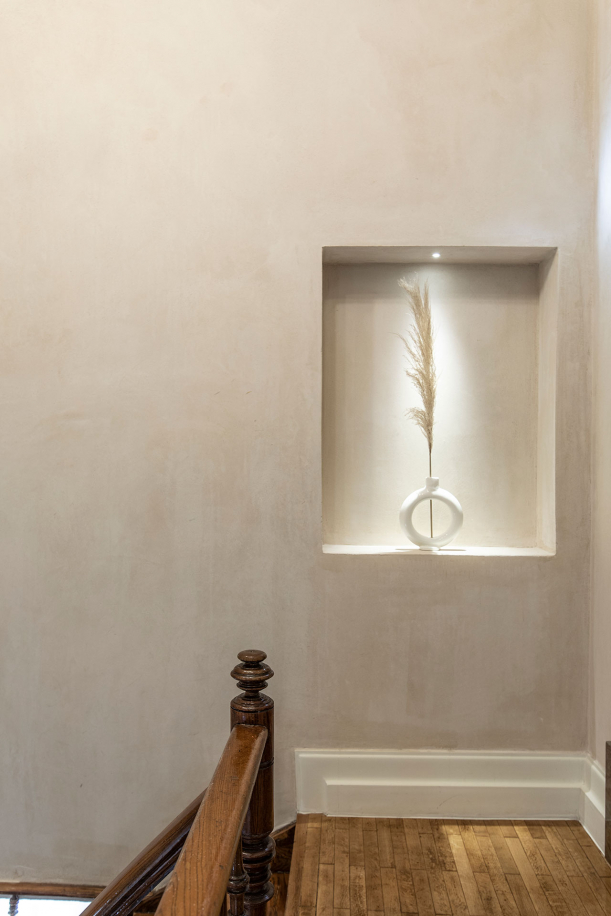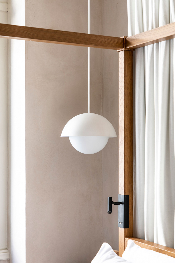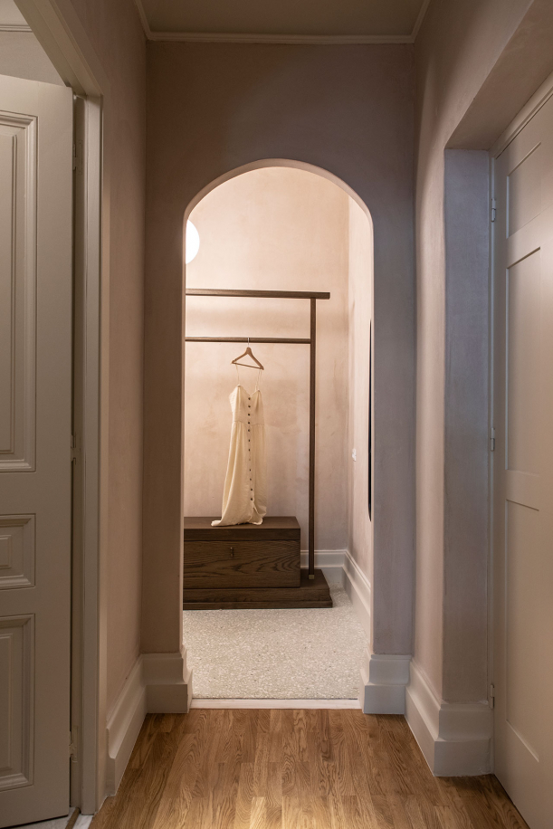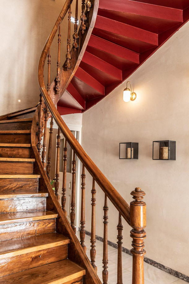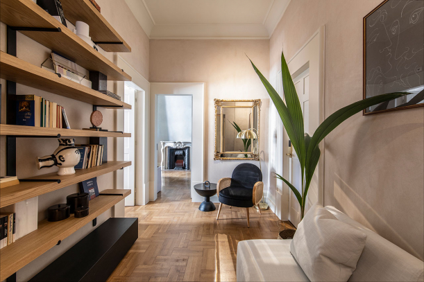V interiéru hotelu vás upoutají detaily, jako jsou ozdobné lišty, mramorové prvky a parketové podlahy, které designéři pečlivě obnovili do původního stavu. Díky dovednostem a tradiční práci tamních řemeslníků dýchá prostor historií. Střízlivou eleganci neoklasické budovy doplňuje tlumená a sofistikovaná paleta jedinečných textilií, ručně vyráběných keramických lamp a kusů nábytku, vyrobených na míru. Ty jsou naopak inspirované modernismem a současným minimalismem. Celkový vzhled a autentičnost vyzdvihují přírodní materiály v podobě mramoru, dřeva či sádry.