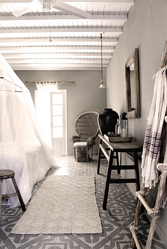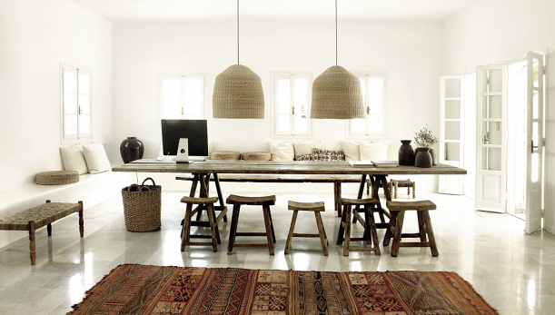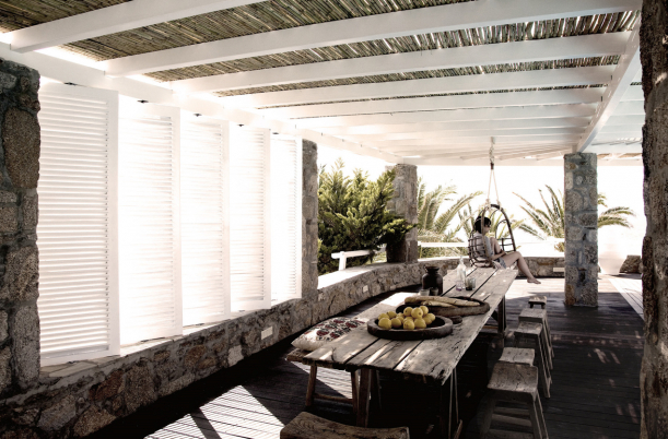 Pečlivě vybrané doplňky dodávají jinak otevřenému prostoru útulnost a teplo domova. Od okouzlujících designových křesel, které ukazují surovost a krásu dřeva, přes tradiční řecké židle až po těžké bavlněné deky či křivolaké linie leštěného cementu. Každý kus má organickou formu nebo svůj přírodní původ a společně tak tvoří harmonický celek.