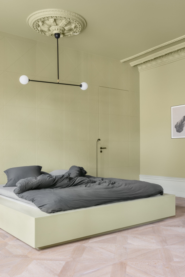„K původní barevné škále, která sloužila jako most mezi silnými originálními odstíny, jsme přidali vlastní tóny. Nakonec z toho vznikla osmitónová paleta, ke které nás dovedly skryté stopy starého bytu,“ vysvětlují architekti z Note Design, kteří tento projekt stylově nazývají „skryté odstíny“.