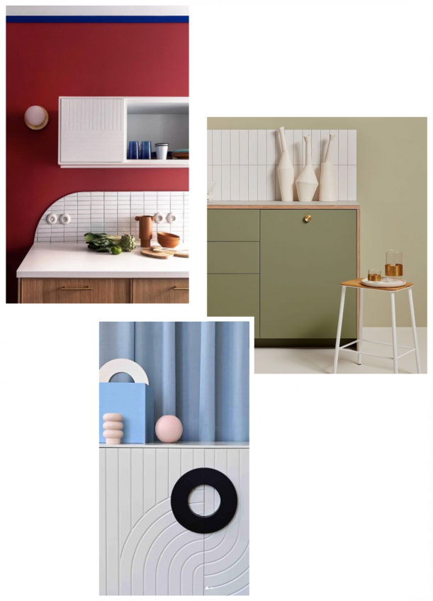Výborný výběr barevných tónů nabízí Farrow & Ball, Little Greene, Little Greene, Pantone nebo křídové barvy Annie Sloan. Vtipné grafické tapety najdete u Ferm Living, Engblad&Co, Cole & Son, Borastapeter nebo českých Lavmi, skříňky různých tvarů a barev i s možností nakonfigurovat si vlastní mix sochařských nožiček a použít je na základ z Ikey nabízí Superfront, Customfront nebo Prettypegs. Podobně variabilní jsou i ty od slovenských Variedo nebo polských Fropt.