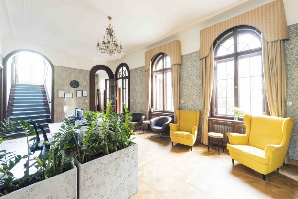 Současná podoba interiérů je výsledkem projektu Kuby Nováka ze Story TLRS, který přišel jak s prostorovými návrhy, tak výběrem dodavatelů pro vybavení. Vzhledem k tomu, že byla vila v perfektním stavu, nemusela uvnitř probíhat zásadní rekonstrukce. "Jediné úpravy proběhly v kuchyňce, kde se proboural odpad a přidávalo se topení", dodává Kuba. O chod budovy se i nadále stará Diplomatický servis.