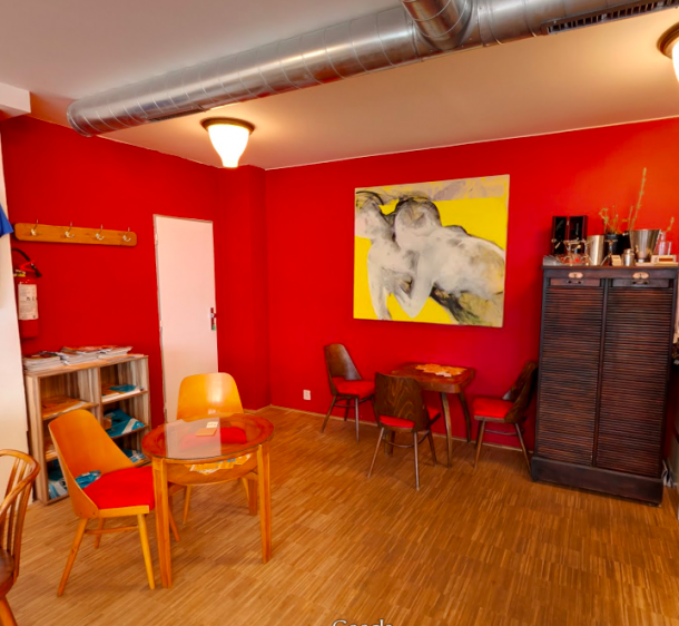 Kavárna sídlí ve stavbě z roku 1941, kde původně byla montovna lampiček. Dnes se tu schází celá škála lidí od capartů až po staříky. Kavárenský prostor se nese ve stylu amerických 50. let.