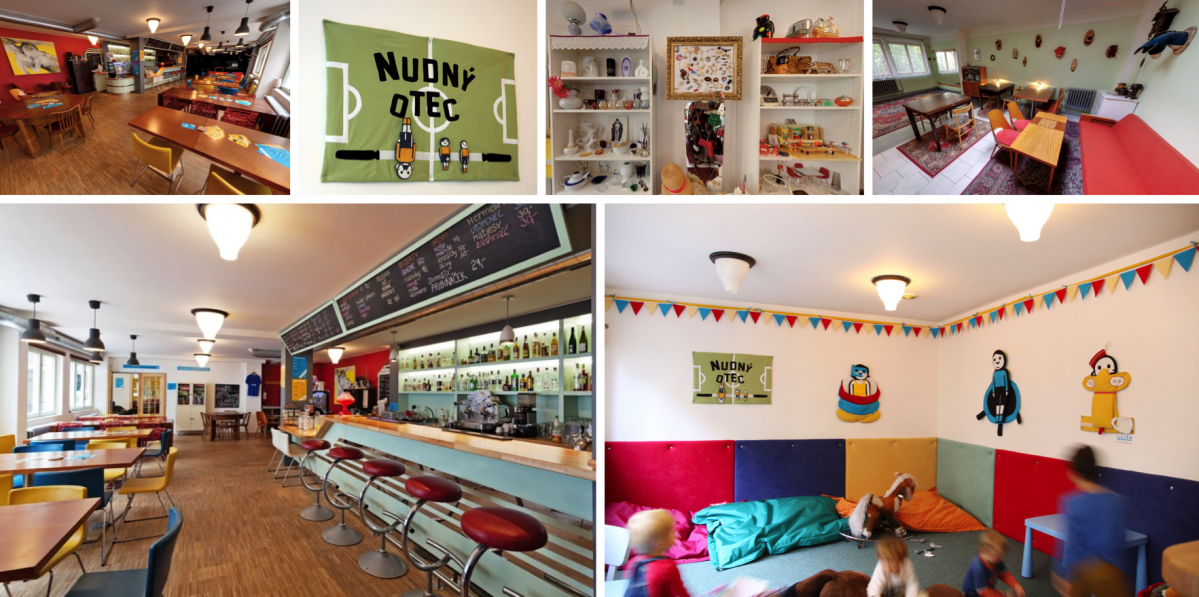 Projdete nenápadnou chodbou a v tom to slyšíte. Dětský výskot a klábosení dospělých. Ve vnitrobloku letenských činžáků se otevírá nový svět. Rodiče tu sedí nad kávou, zatímco děti skáčou na trampolíně. Přesto to není místo zaměřené především na děti, jak by se na první pohled mohlo zdát. Vítejte v kavárně Nudný otec.