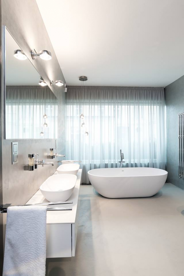 Volně stojící vanu umístili architekti třeba do projektu 12 lofts.