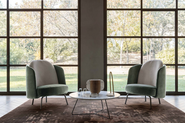 Naopak eleganci a ženskost ladných křivek přináší křeslo Lucia z dílny výrobce Ditre Italia. K dispozici je ve dvou verzích, s vysokým nebo nízkým opěradlem v showroomech Decoland.