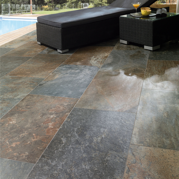 Břidlicová kamenná dlažba Mustang Golden Glow vyniká trvanlivostí a tvrdým povrchem. K dostání u Fortel Design