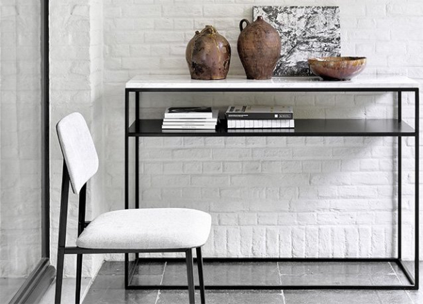 A uvnitř ještě chvíli zůstaneme. Stylový konzolový stůl Stone Console propojuje černou lakovanou ocel s kvalitním bílým mramorem. Jeho vzdušný a elegantní design si můžete prohlédnout, nebo si stůl rovnou koupit v obchodech Stockist.