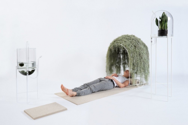 Soukromou zelenou oázu navrhlo například studio Judith Fassbender a Benjamin Schief. Designéři přišli s instalací In/Out, již tvoří tři objekty. Rostliny vyžadují oxid uhličitý a vlhkost, kterou jim může poskytnout lidský dech – stačí se například položit pod zelenou bránu a dýchat, či dýchat do hadičky propojené s rostlinou. Projekt tak dostává přírodu a člověka alespoň do dočasné symbiózy.