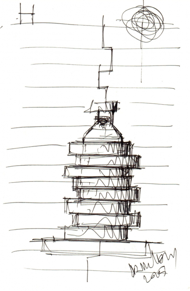 Motiv prvků navrstvených buď soustředně, nebo naopak vybočujících ze středové osy objektu, se v díle Arika Lévyho již několikrát objevil. Najdeme jej například na svícnu Layers pro Forestier, u svícnu Double Herkimer nebo u souboru objektů pro značku Gaia & Gino.