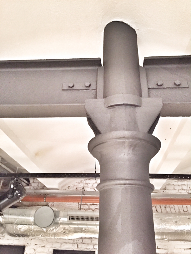 V prostorách se předtím nacházelo zakázkové krejčovství a všechny stěny byly schované za sádrokartony, podlahy pokryté červenými koberci. Sádrokartony i koberce architekti odstranili, přiznali struktury prostoru a majitelka prostorů byla nadšená, že se obnovily staré cihly.