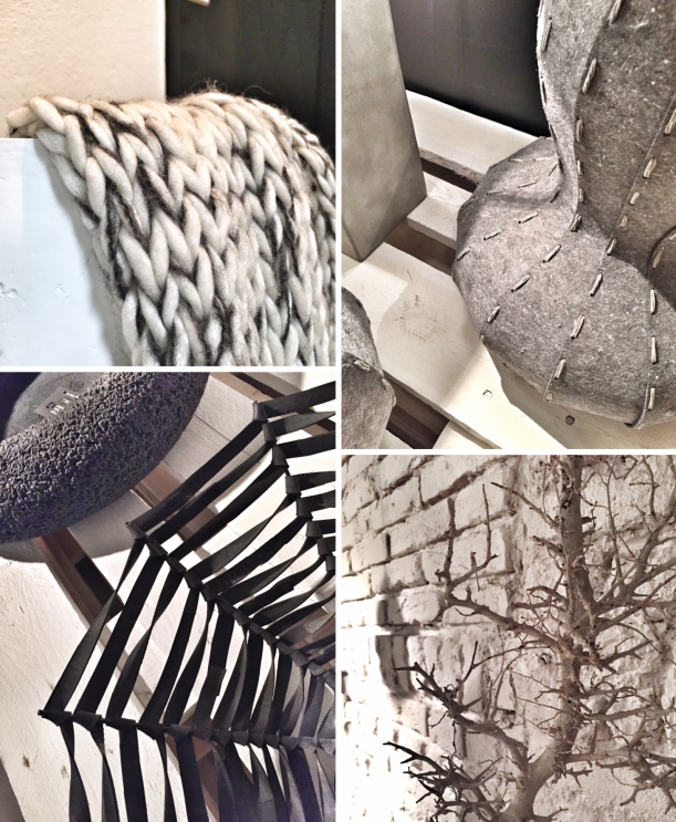 Surové materiály často tvoří zajímavý konstrast s jemnými prvky.