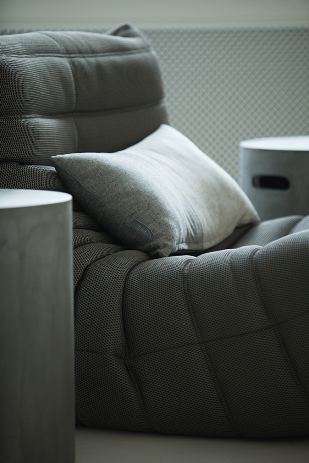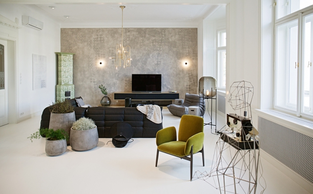 Radka Valová se svým ateliérem navrhla i byt pro SQUAT iD23, kde použila produkty z LOOOXu. Uvidíte tu třeba betonové stolky, závěsné zrcadlo a polštáře.