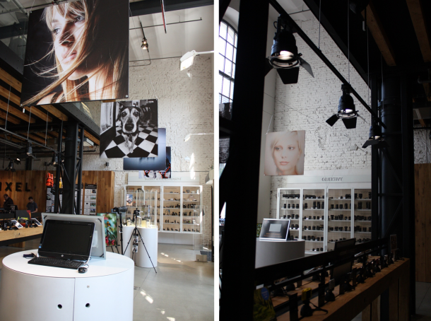 Právě interiér Megapixelu v režii studia ADR, tedy architektů Aleše Lapky, Petra Koláře a Jany Zoubkové, letos získal ocenění Interiér roku v soutěži Grand Prix architektů. Rozkládá se přes 500 m2. „Zásadní bylo to, že prostor je bývalá industriální stavba, která v sobě nese původní prvky pivovaru jako železné litinové sloupy či staré cihelné zdivo. Řekli jsme si, že tyto originální sloupy i klenby zachováme a odhalíme strukturu stěn. Omítku jsme otloukli na cihly a potřebovali doplnit něčím novým. Proto jsme zvolili dva základní materiály: přírodní beton, co je na podlaze, a k němu železné černé konstrukce - i fotoaparáty zde prodávané jsou většinou totiž černé, popřípadě bílé. Abychom vytvořili kontrast, použili jsme přírodní dubové dřevo," vysvětluje Aleš Lapka ze studia ADR.