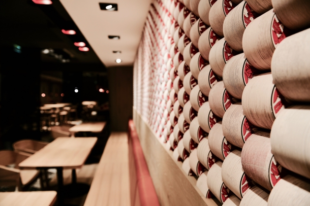 Za povšimnutí stojí i detail kožených opěráků lavic, které jsou prošité tvarem pivních lahví. Centrální osvětlení je také inspirováno pivem: konkétně pivními přepravkami.