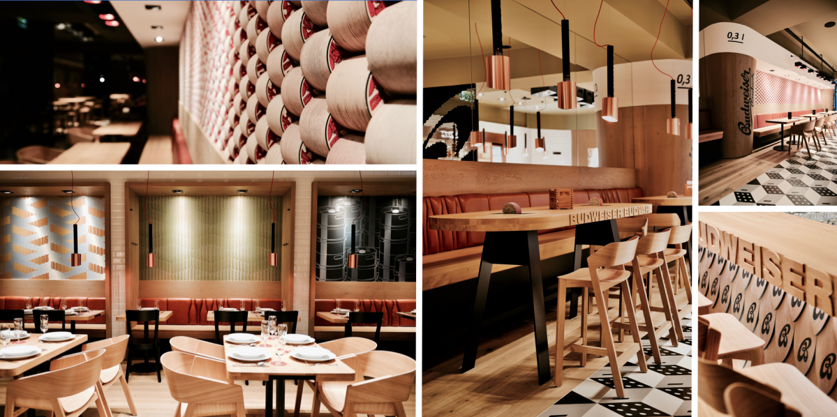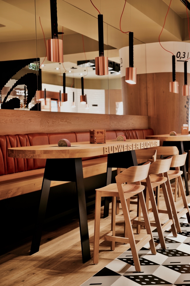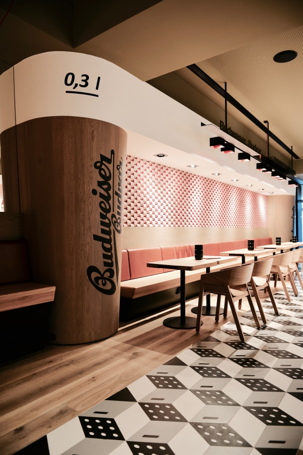 „Tím, že se jedná o projekt pro korporát, museli jsme v návrhu plně reflektovat značku Budweiser Budvar a zároveň bylo nutné odlišit se od dalších značkovývh řetězců,“ pokračuje Križek.