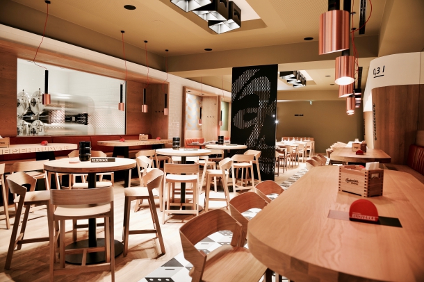 „Koncept je vymyšlený tak, aby byly návrhy snadno a rychle aplikovatelné pro různé typy interiérů s důrazem na používání co nejmenšího počtu atypických detailů. Jedná se proto o jakousi univerzální skládačku. U takových projektů jde nejprve o navržení dostatečného množství modulárních prvků, které vám následně při aplikaci konceptu dávají svobodu. Proto každá restaurace je svým způsobem original,“ říká Križek.