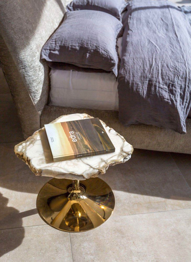 Stolek Cicladi z dílny designéra Jacopa Fogginiho je inspirován řeckým souostrovím, jehož tvar se odráží v alabastrové desce stolu. Díky tomuto okouzlujícímu materiálu je každý stolek originál. Edra ho nabízí v různých barevných provedeních, a to jak v písčitě bílé, tak modré, zelené nebo černé.
