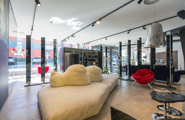 Jakmile zavítáte do průhonického showroomu, dýchne na vás takřka umělecká atmosféra, plná exkluzivních kousků nábytku. Expozice Edra Spazio se zde rozkládá na 250 metrech čtverečních a k vidění je jak reálný nábytek, tak také ten na velkoformátových fotografiích i v zrcadlech, jimiž je celý prostor doplněn. Jako první vás upoutá velká bílá pohovka Pack, která ztvárňuje ledovou kru se spícím ledním medvědem. Sedačka pochází z dílny designéra Francesca Binfaré, který se inspiroval arktickou divokou zimou. Díky promyšleným křivkám a příjemnému měkkému materiálu je sedačka extrémně pohodlná a přímo se vybízí lenošení.