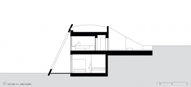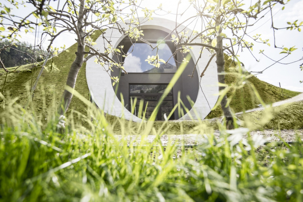 Celý prostor sauny je velmi klidný a noří se do nitra přírody. Zvenku vypadá stavba jako zelený kopec, který se však postupně mění a prolíná do intimního až mystického prostředí interiéru sauny.