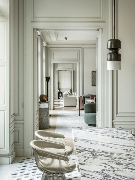 Do podobné situace se dostal i pařížský designér a architekt Joseph Dirand, když ho východoevropská mecenáška umění oslovila, aby renovoval dva její byty na Avenue Montaigne v Paříži. Byty, které sousedí s luxusními obchody různých světových značek, zaujímají celkovou plochu 600 metrů čtverečních. Designér dostal tvůrčí svobodu a takřka neomezený rozpočet.