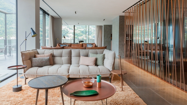 Jiný hotel se vloni otevřel na břehu italského jezera Como. Tady se designérka opravdu vyřádila. Navrhla nejen vybavení pokojů, ale i uniformy pro zaměstnance či soukromé loďky. Pracovala se dřevem, místním terrazzem či travertinem. Vsadila na přírodní odstíny v kombinaci s pastelovými barvami.