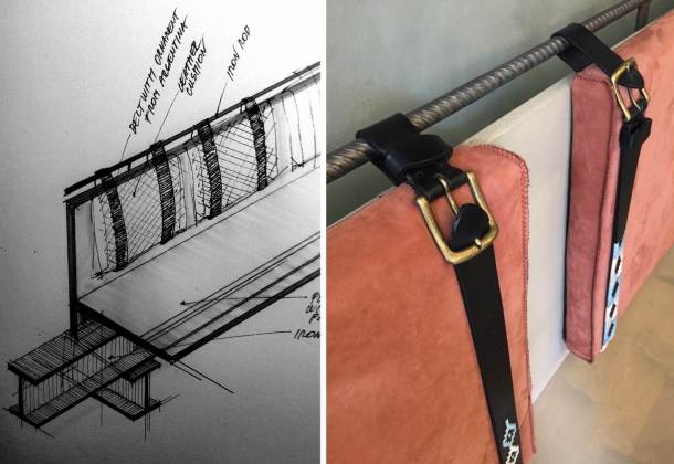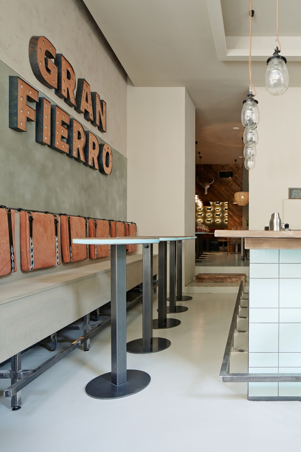 V Gran Fierro najdete mnoho působivých a propracovaných detailů, které vás na okamžik přenesou o více jak 10 000 kilometrů jinam. Kožené polštáře například připínají vzorované pásky do kalhot dovezené z Buenos Aires. Díky tomuto hravého nápadu se dají polštáře jednoduše odepínat, vyměňovat a přemisťovat. Zatímco v tomto případě architektky pásky využily v novém kontextu, obsluha je nosí tam, kde mají být – v džínách. Interiér tak vlastně spoluvytvářejí i zaměstnanci.
