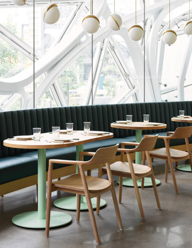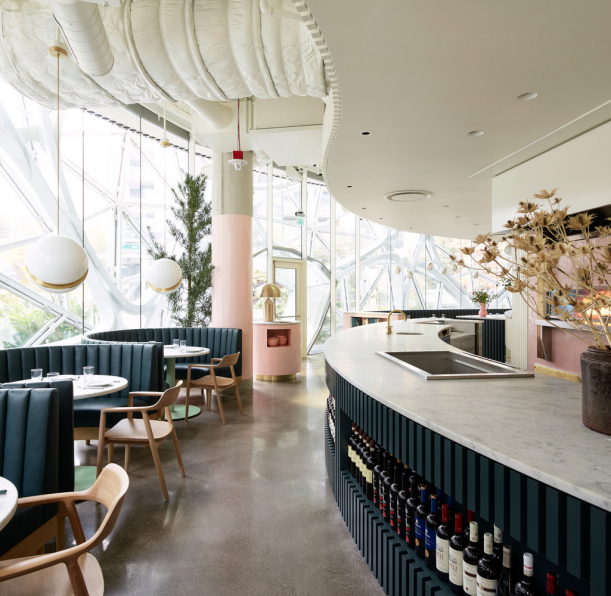 „Udělali jsme z našeho řemesla hlavní složku restaurace,“ říká majitel a šéfkuchař Jeremy. Restauraci bylo těžké postavit kvůli zakřivené povaze budovy a sofistikovanému mechanickému systému nad i pod restaurací, který udržuje rostliny naživu. „Budova neposkytovala ani dostatek prostoru pro manévrování a nakládku vybavení. Bylo to jako stavět loď v láhvi," dodávají architekti.