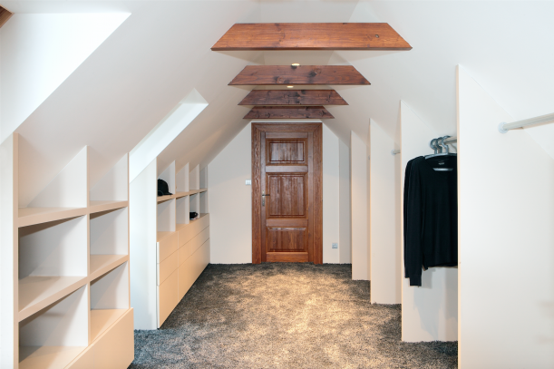 Veškeré vybavení kromě postele a křesla v manželské ložnici vzniklo na míru.
